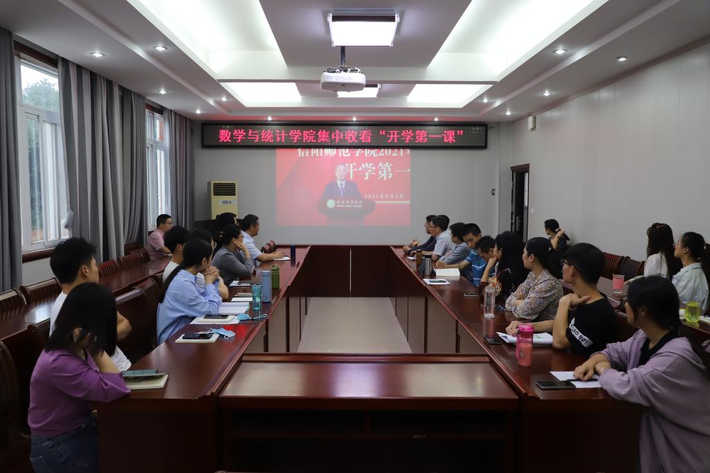 为贯彻落实河南省委和省教育厅疫情防控有关要求,持续深入开展“把灾难当教材 与祖国共成长”主题教育活动,按照信阳师范学院《关于做好2021-2022学年第一学期本科课程线上教学工作的通知》要求,成人在线 9月6日上午8:00—10:00通过超星网络平台组织全院师生同上《开学第一课》。学院领导班子成员、系(副)主任、中心(副)主任、教研室主任、班主任等老师在数学楼315会议室集中观看了开学第一课。