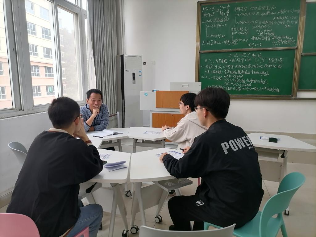 在404室,张青海老师指导匡宇、段一宇和刘瑞霞三位学生。其中匡宇同学讲了七年级《二元一次方程式》。段一宇同学讲了七年级的《绝对值》一课。刘瑞霞同学讲了九年级数学《一元二次方程》一课。张青海老师对三个同学的讲课给予了指导。从上台的仪表仪容,到上课的各个环节;再到上课的语言技巧,讲课技巧,提问技巧,小组活动的组织和开展等作了评析,三个学生不断点头,在笔记本上认真记录。其它的每个组都进行得如火如荼,讲课的学生全力以赴,评析的老师一丝不苟。