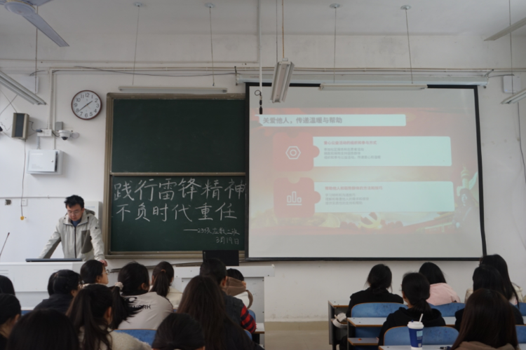三月是学习雷锋精神活动月,为了弘扬雷锋精神,提高青年学子的思想道德品质和社会责任感,3月19日下午,成人在线 各班在教室开展了“践行雷锋精神,不负时代重任”主题团课。