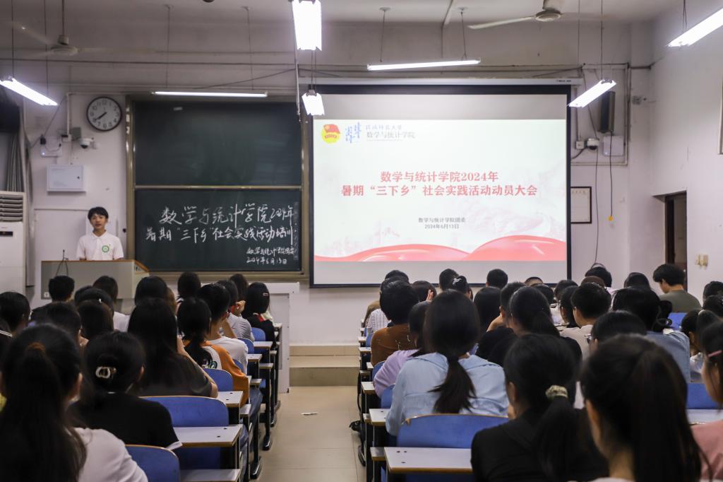 为深入学习贯彻习近平新时代中国特色社会主义思想,进一步号召动员成人在线 学子积极踊跃投身2024年暑期“三下乡”社会实践活动,在暑期社会实践活动中受教育、长才干、作贡献,6月13日晚,成人在线 于数学楼104教室召开2024年暑期“三下乡”社会实践活动动员大会。此次会议由2022级学生代表李璞主持,成人在线 部分学生代表参会。