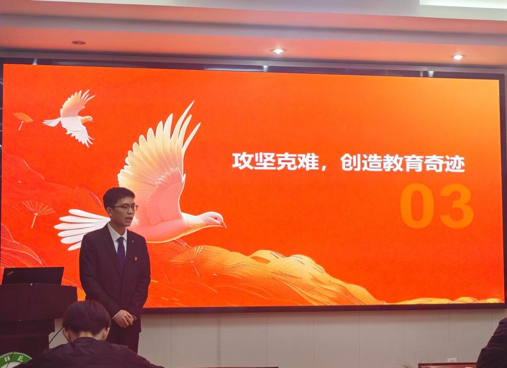 比赛尾声,学院党委副书记葛文鹏作点评总结,葛书记对选手们的精彩表现给予高度肯定。他提到,张桂梅、张鹏程等教师楷模是灯塔,身边的优秀教师是榜样,而同学们的亲身实践则是前行的脚步,三者相融,便是学院育人成果与教育传承的生动体现。同时,葛书记也对同学们提出期望,希望大家无论未来身处何处,都勿忘今日所感所悟,将基层教育的火种播撒得更广更远,让希望之光永不熄灭,持续为教育事业添砖加瓦,助力更多学子逐梦飞翔。