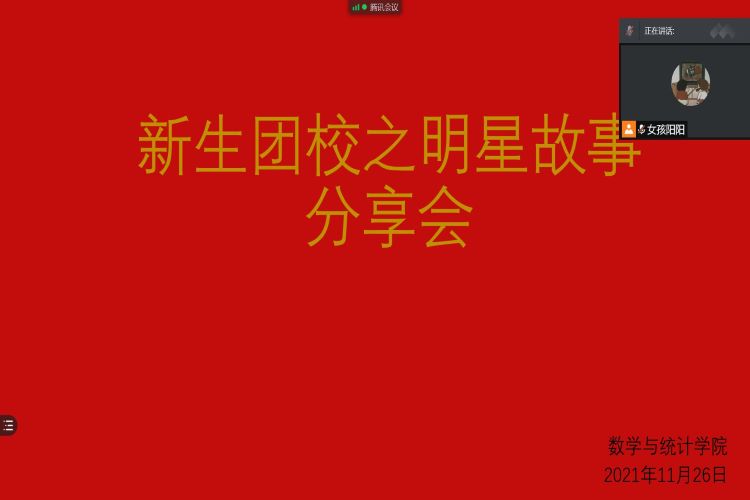 为深入学习贯彻习近平新时代中国特色社会主义思想,充分发挥共青团思想政治引领和价值引领的作用,深入挖掘学生先进典型,充分发挥榜样引领与示范作用。11月26日,成人在线 组织21级学生干部、部分学生会成员以及往届明星学长学姐参加此次线上明星故事分享会。会议由组织部部长王金丰主持。