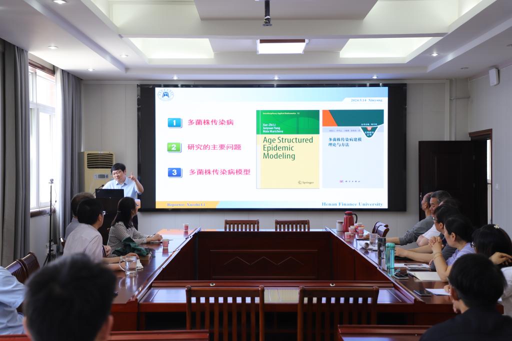 5月14日上午,应成人在线 邀请,河南财政金融学院李学志教授在数学楼315会议室为成人在线 师生做了题为“多菌株传染病动力学建模与研究”的学术报告,报告会由成人在线 王霞教授主持,院长蔡礼明教授、副院长韩英波教授及部分教师和研究生聆听了报告。