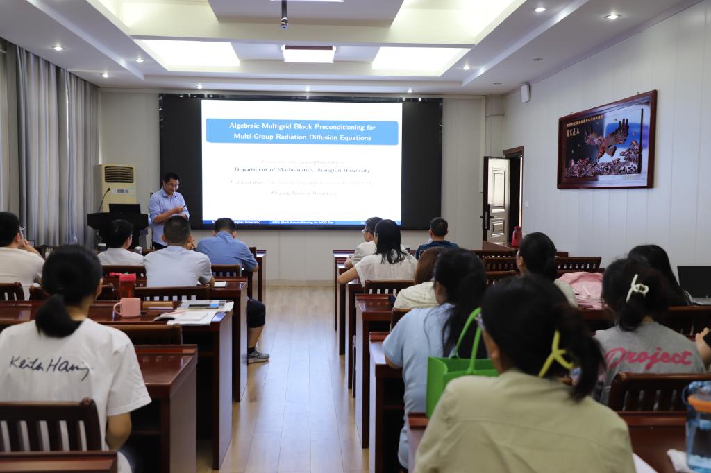 6月16日上午,应成人在线 邀请,湘潭大学岳孝强教授作了题为《多群辐射扩散问题的代数多重网格块型预条件算法》的学术报告。报告会由李世顺教授主持,部分老师及研究生聆听了此次报告。