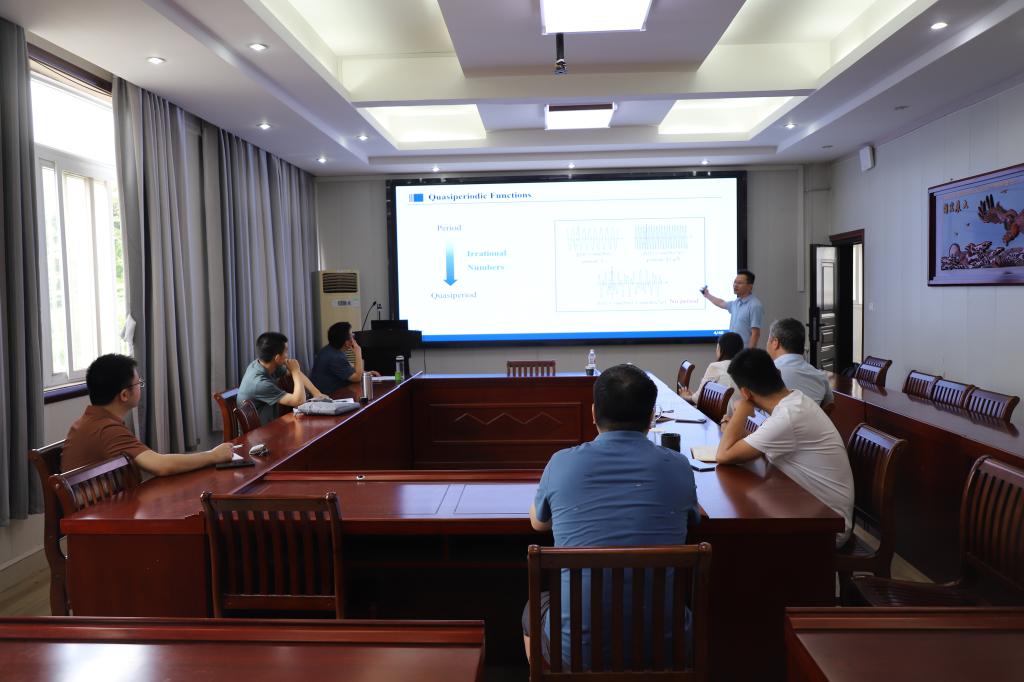 7月2日上午,应成人在线 邀请,湘潭大学蒋凯教授作了题为《准周期系统计算进展》的学术报告。报告会由李世顺教授主持,副院长韩英波教授、部分老师及研究生聆听了此次报告。