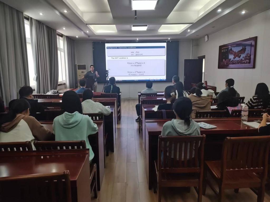 10月5日上午,应成人在线 邀请,山东理工大学周金川教授作了题为《二阶锥互补问题具有误差界性质的充分条件》的学术报告。报告会由韩英波教授主持,部分老师及研究生聆听了此次报告。
