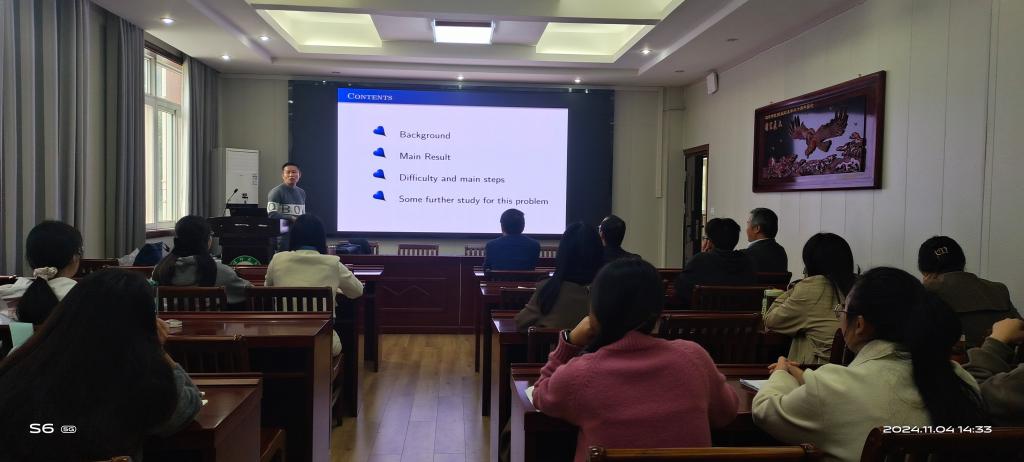 11月4日下午,应成人在线 邀请,山东烟台大学郑甲山教授在数学楼315会议室为成人在线 师生做了题为“Some progress for the global existence andboundedness of high-dimensiona chemotaxis -haptotaxis modelis with re-establishment mechanisms”的学术报告,报告会由成人在线 韩英波副院长主持,成人在线 部分教师和研究生聆听了报告。