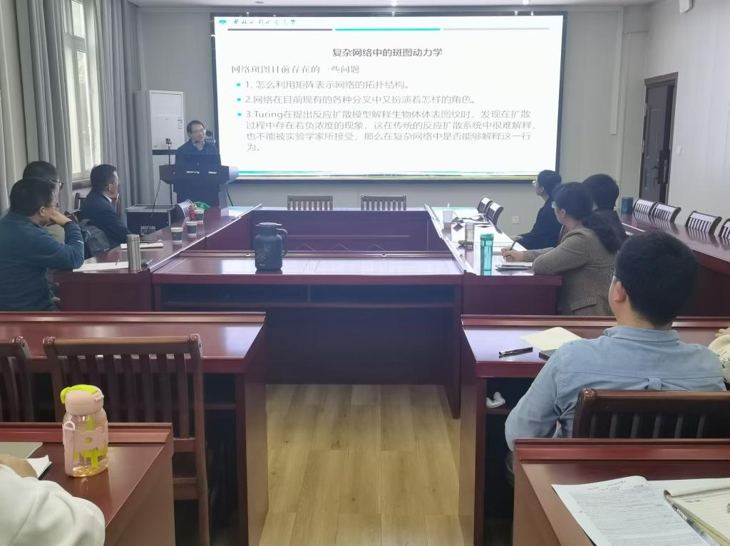 11月15日下午,应成人在线 邀请,华北水利水电大学申建伟教授在数学楼315会议室为成人在线 师生作了题为“生物反应扩散系统的斑图动力学”的学术报告。报告由副院长王霞教授主持,生物数学方向的老师及研究生聆听了此次报告。