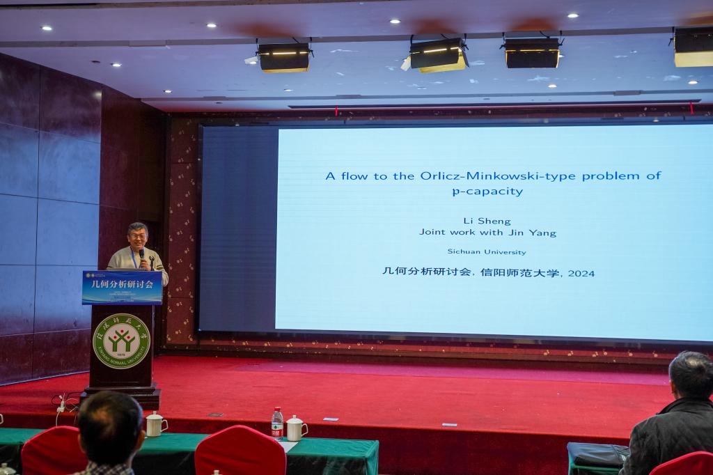 12月1日上午共有4场学术报告,第1场学术报告是由四川大学的盛利教授作了题目为“A flow to the Orlicz-Minkowski-type problem of p-capacity” 的学术报告,此场学术报告由西南大学的周家足教授主持。