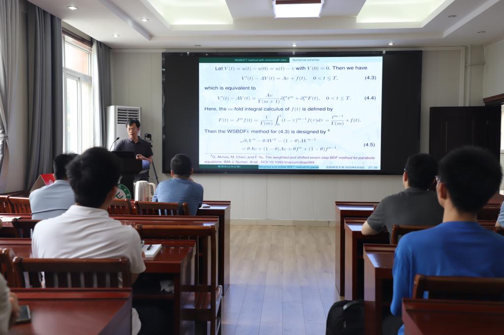 6月9日上午,应成人在线 邀请,兰州大学陈明华教授作了题为《Weighted and shifted seven-step BDF for parabolic equations with nonsmooth data》的学术报告。报告会由李世顺教授主持,部分老师及研究生聆听了此次报告。