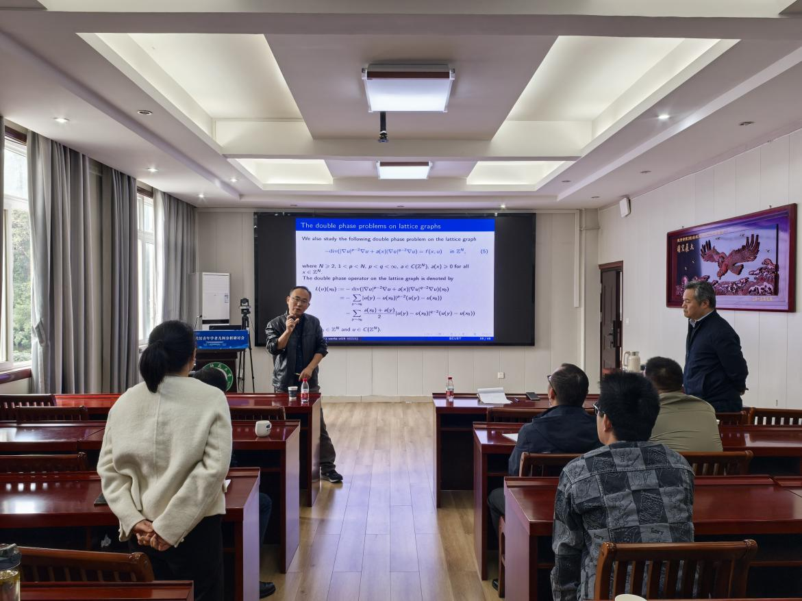 10月24日上午,华东理工大学姬超教授在数学楼315会议室为成人在线 师生做了题为《Some results on nonlinear PDEs on lattice graphs》的学术报告。报告由数学与统计学院副院长韩英波教授主持,学院相关专业教师、研究生参加了报告会。