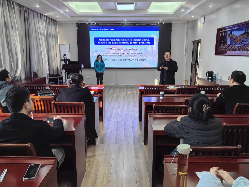 11月29日上午,应成人在线 邀请,莆田学院曾闽丽教授在数学楼315会议室为成人在线 师生做了题为《求解椭圆型最优控制问题的改进预处理非精确Uzawa方法》的学术报告,报告由李世顺教授主持,部分教师和研究生聆听了此次报告。