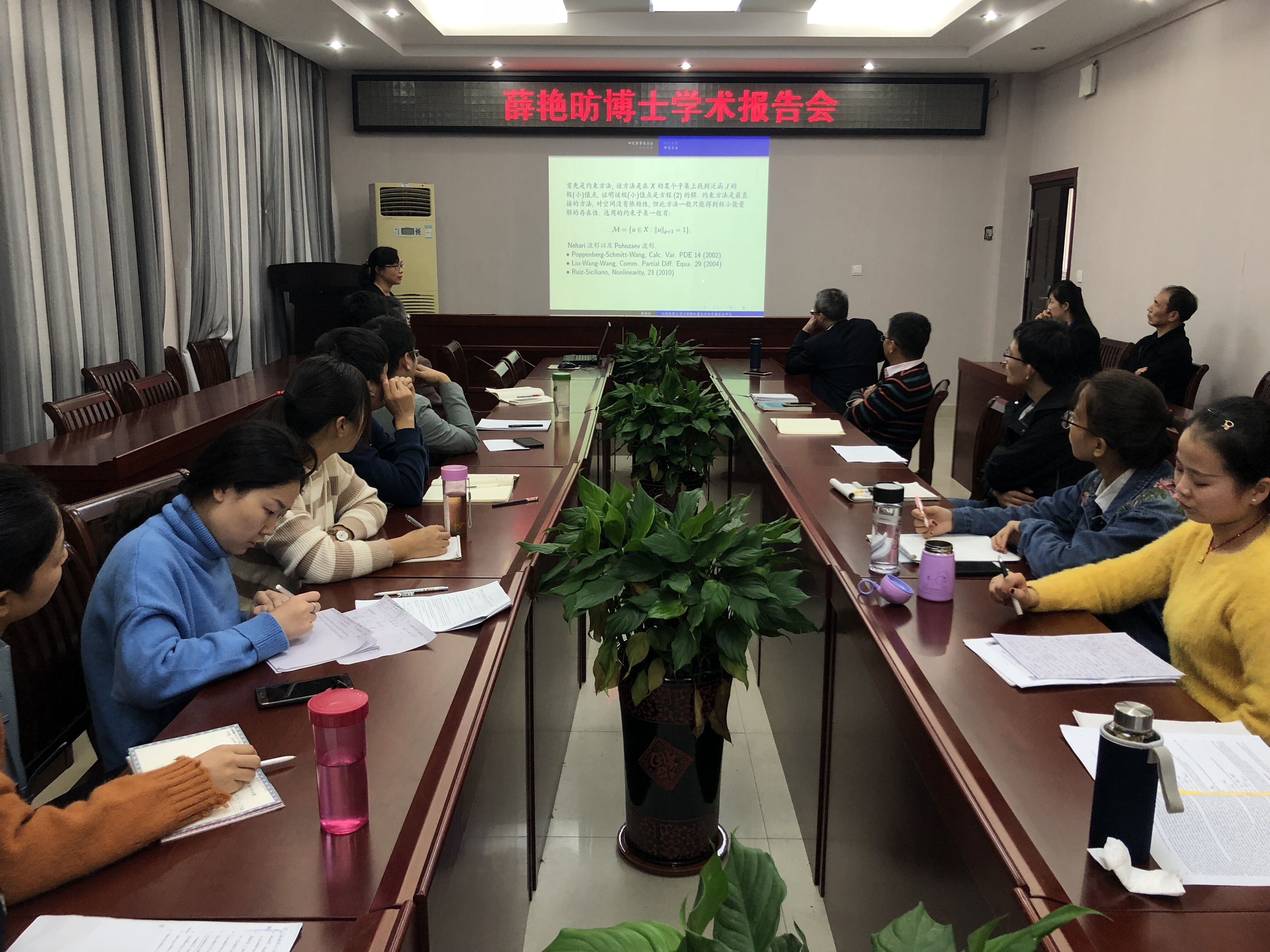 2018年10月22日下午,成人在线 刘守宗博士和薛艳昉博士在学院学术报告厅分别作了题为“A Stage-structured predator-prey model with predation on juvenile and adult prey”和“The existence and nonexistence of solutions for quasilinear Schrodinger equation”的学术报告。报告会由副院长蔡礼明教授主持, 学院部分教师和研究生聆听了此次报告。