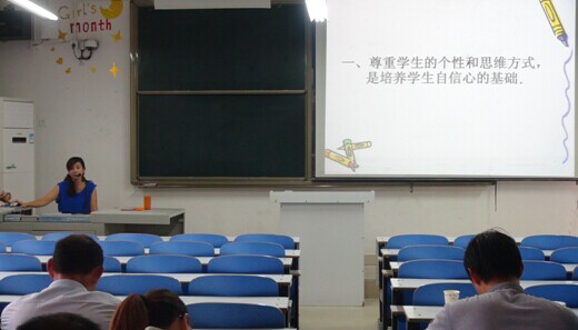 9月7日下午,应数学学院邀请,信阳市十三小高级教师张万霞在数学学院104教室作了题为“学生学习兴趣和自信心的激发”的报告。“国培计划(2014)”――短期集中培训项目小学数学班全体学员聆听了报告,报告由国培班班主任张萍老师主持。