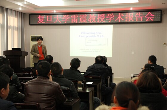 12月27日,应数学学院邀请,复旦大学雷震教授来成人在线 讲学,在数学学院学术报告厅做了题为“不可压缩的纳维叶-斯托克斯方程”的学术报告。数学学院相关教师及部分研究生聆听了报告。报告会由数学学院院长胡余旺教授主持。