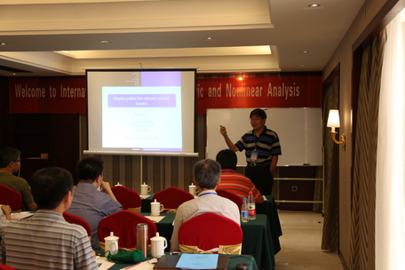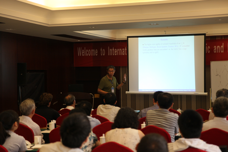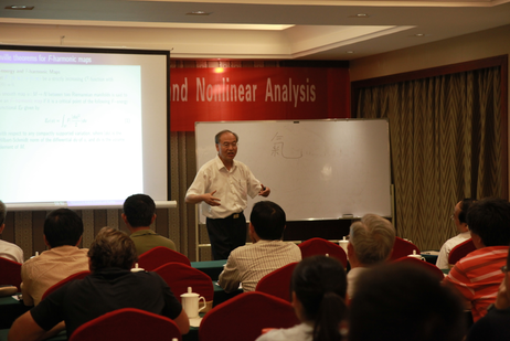 第四场学术报告由南昌大学黎镇琦主持。美国美国俄克拉荷马大学魏诗曙教授作了题为《Uniqueness in Analysis, Geometry and Topology》的报告,和中国古代哲学相结合,讨论了分析、几何、拓扑中的唯一性问题。