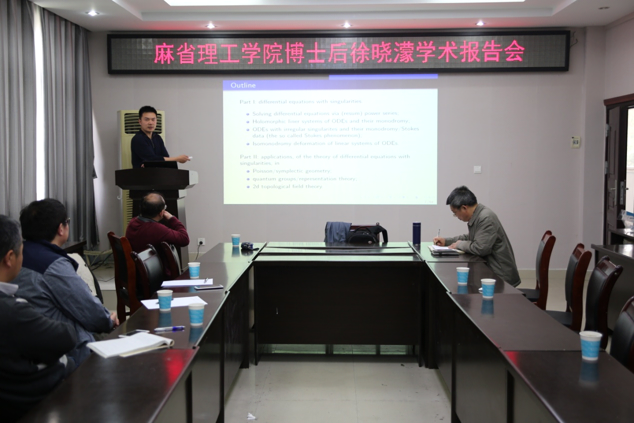 邀请,宁波大学屈长征教授和麻省理工学院博士后徐晓濛在数学院学术报告厅分别作了题为“Integrable Systems and Invariant Geometric Flows”和“Stokes phenomenon, quantum groups and 2d topological field theory”的学术报告。报告会由成人在线