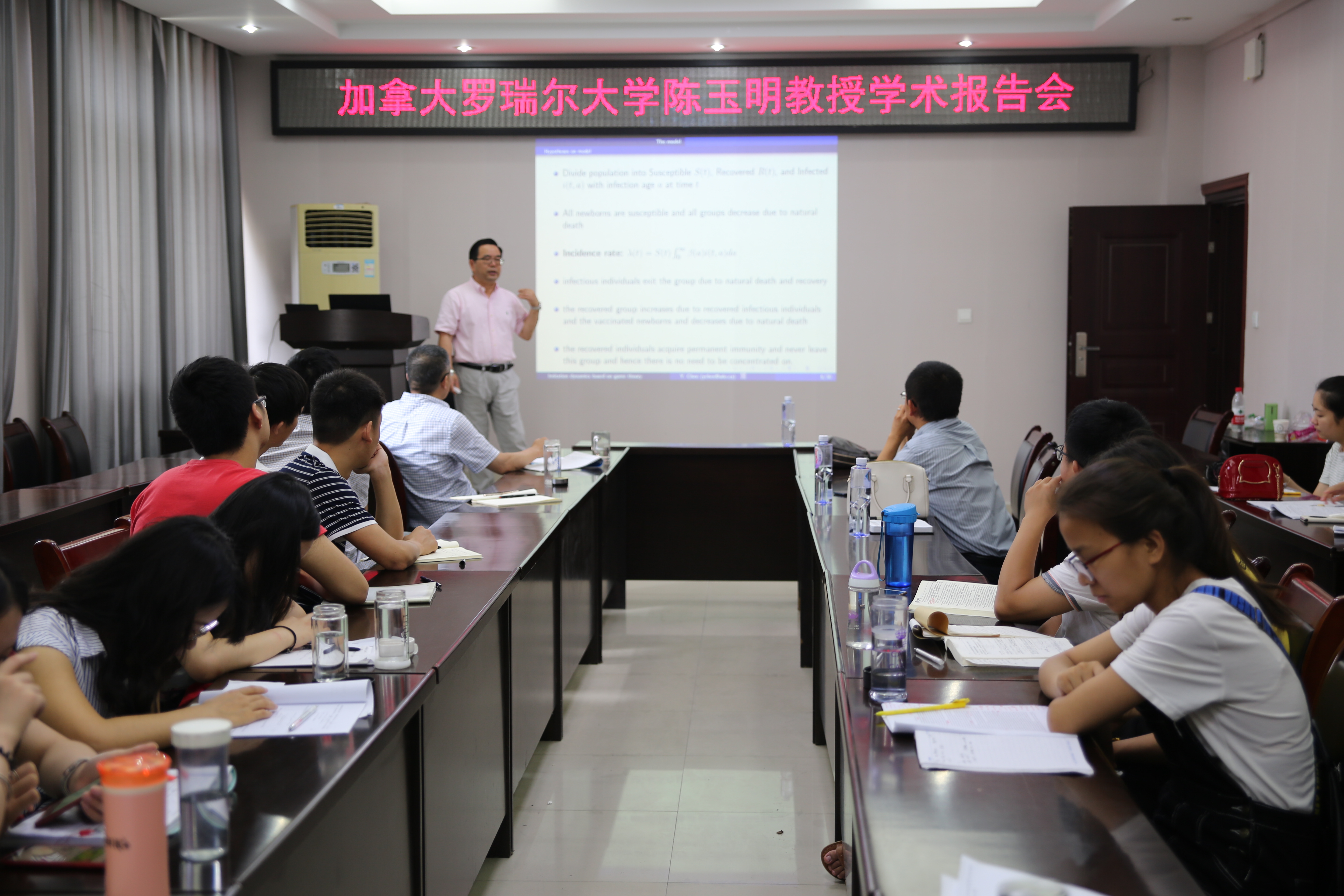 6月21日,应成人在线 邀请,加拿大罗瑞尔大学陈玉明教授在成人在线 学术报告厅分别作了题为“Global analysis of a viral model with both cell-free and cell-to-cell infection modes”和“Imitation dynamics of vaccine decision-making behaviors based on the game theory”的学术报告。报告会由成人在线 副院长蔡礼明教授主持,学院部分教师、研究生聆听了此次报告。