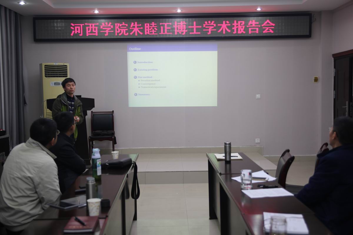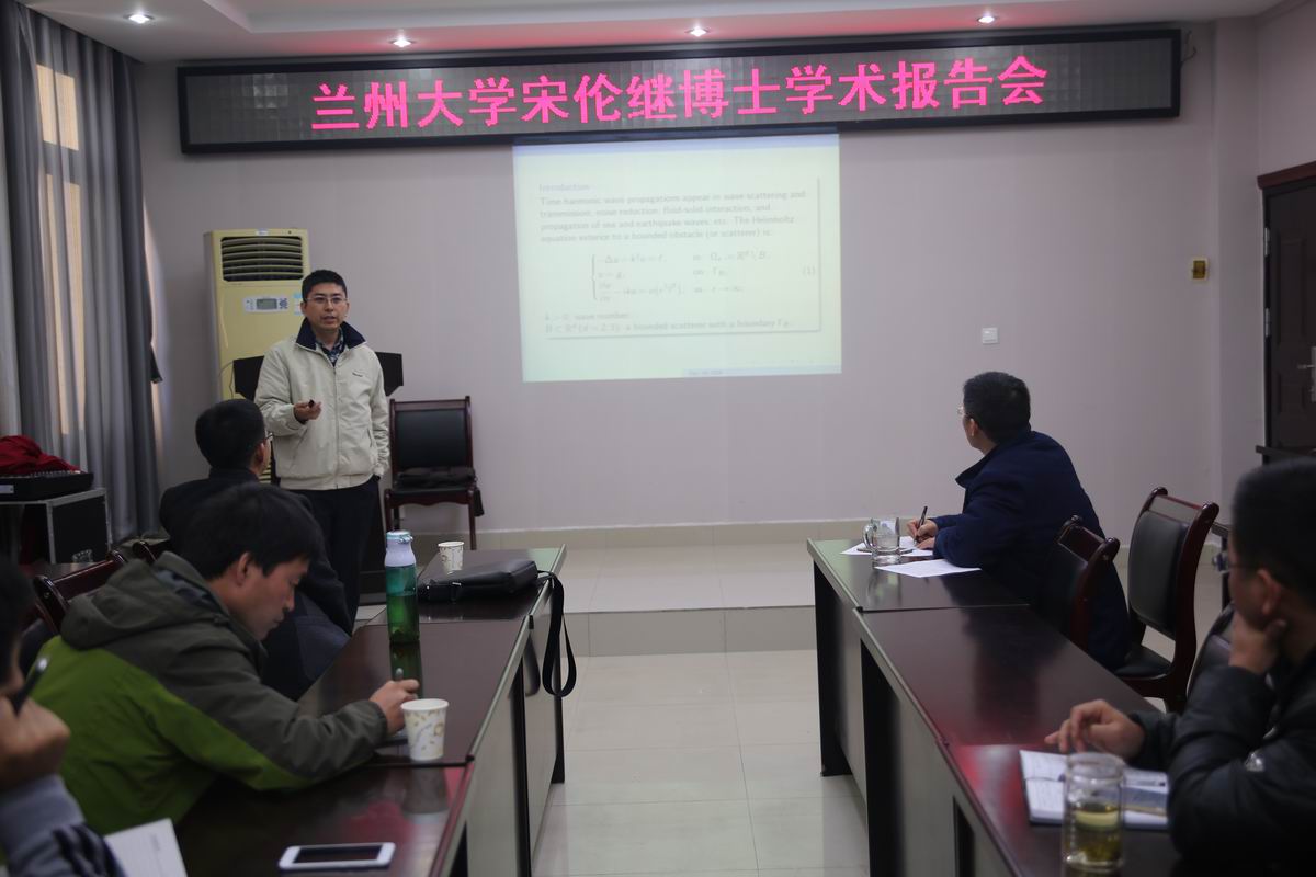 12月16日下午,应成人在线 邀请, 兰州大学宋伦继博士、杨爱利博士和河西学院朱睦正博士在成人在线 学术报告厅分别作了题为“A Multi-Domain Spectral IPDG Method for Helmholtz Equation with High Wave Number”、 “Minimum residual Hermitian and skew-Hermitian splitting iteration methods for non-Hermitian positive definite linear systems”、 “On HSS-based sequential two-stage methods for non-Hermitian saddle point problems”的学术报告. 成人在线 部分教师及研究生聆听了报告。 报告会由成人在线 副院长蔡礼明教授主持。