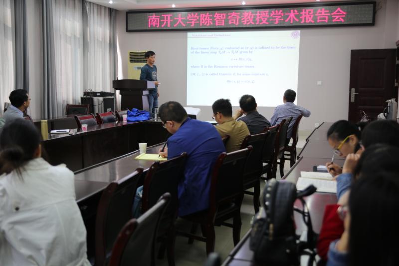 报告人简介:陈智奇,南开大学数学科学学院教授,博士生导师。研究方向是齐性空间上的伪黎曼度量,特别是李群上的伪黎曼度量。近年一系列研究成果发表在国际重要学术期刊J Geom. Anal, Comm. Anal Geom., J Pure Appl. Algebra等上。