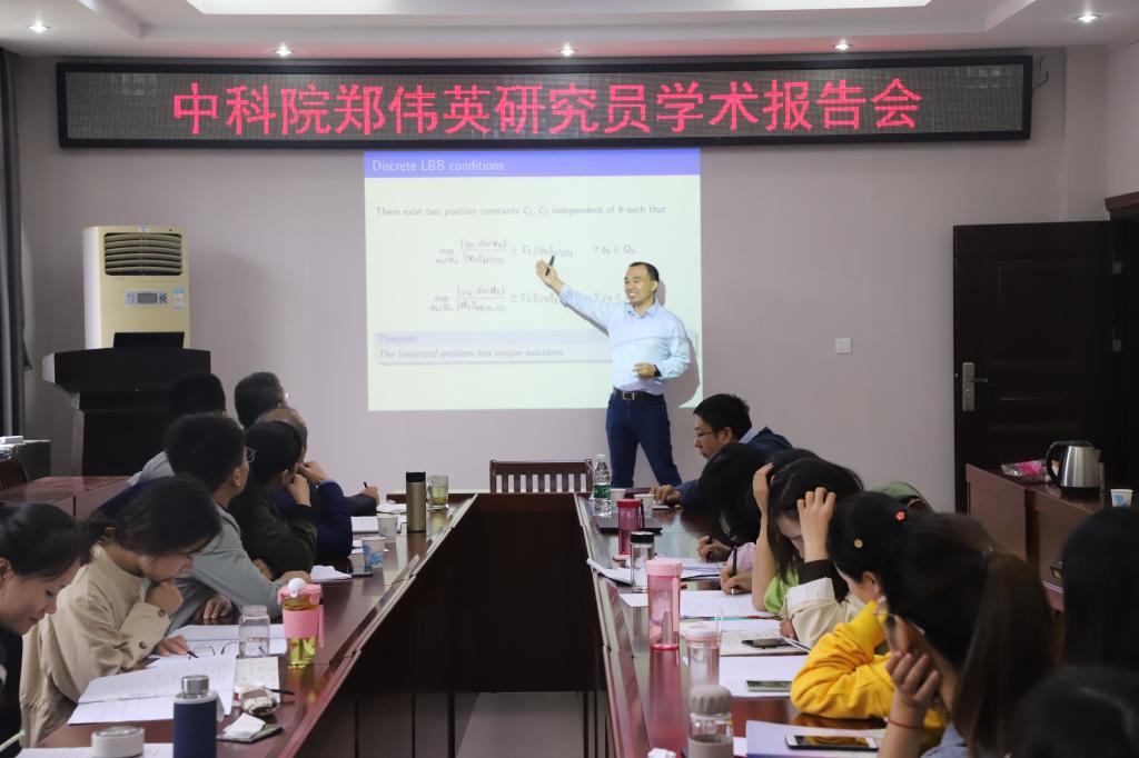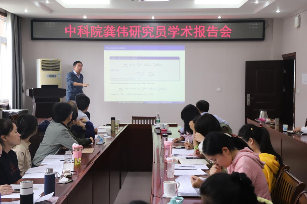 10月11日上午,应成人在线 邀请,中国科学院数学与系统科学研究院郑伟英研究员和龚伟研究员,在学院学术报告厅分别作了题为“Conservative finite element method for incompressible MHD equations”和“Convergence analysis of the Schwarz alternating method for elliptic optimal control problems”的报告。报告会由成人在线 副院长蔡礼明教授主持,学院部分教师和研究生聆听了这次报告会。