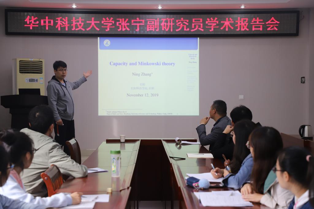 11月12日上午,应成人在线 邀请,华中科技大学张宁副研究员在成人在线 学术报告厅作了题为“Capacity and Minkowski problem”的学术报告。报告会由成人在线 韩英波副教授主持,几何团队全体教师和部分研究生聆听了此次报告。