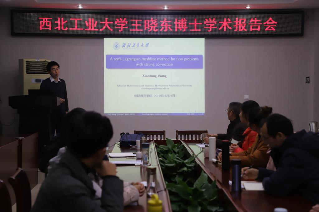 12月23日下午,应成人在线 邀请,西北工业大学王晓东博士在学院学术报告厅作了题为“A semi-Lagrangian meshfree method for flow problems with strong convection”的学术报告,报告会由成人在线 副院长蔡礼明教授主持,成人在线 的部分老师和全体研究生聆听了此次报告。