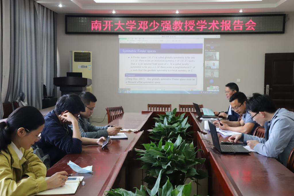 5月11日下午,应成人在线 邀请,南开大学邓少强教授通过腾讯会议做了一场题为《On the symmetry of Riemann-Finsler spaces》的网络视频学术报告。报告会由成人在线 副院长蔡礼明教授主持,院长胡余旺教授,学院部分老师和研究生聆听了此次报告。