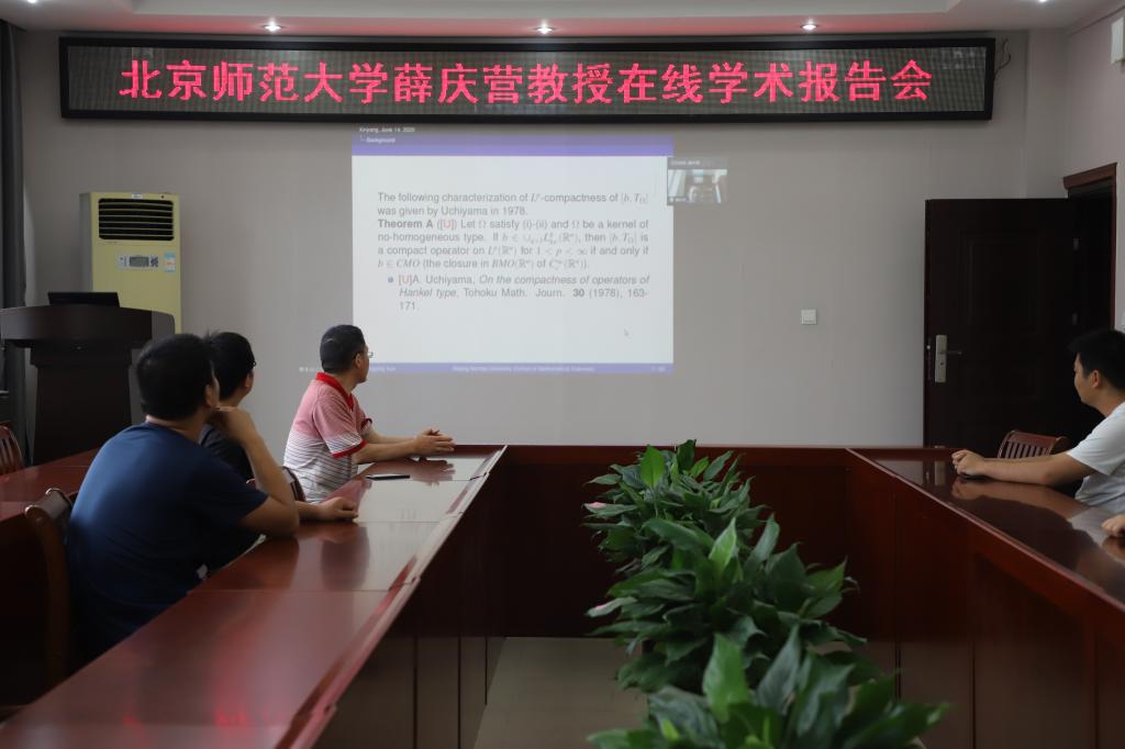 6月14日,应成人在线 邀请,北京师范大学薛庆营教授通过腾讯会议平台作了一场题为《多线性算子的交换子的紧性问题》的网络视频学术报告。报告会由成人在线 副院长蔡礼明教授主持,学院部分老师,研究生和该领域相关博士聆听了此次报告。