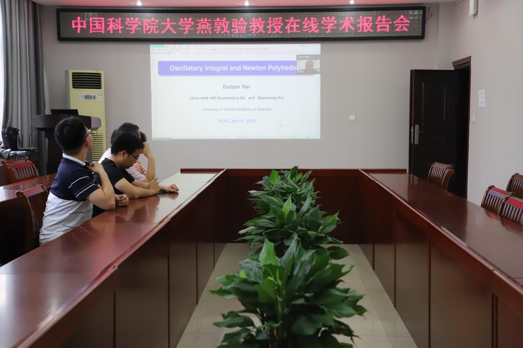 6月14日,应成人在线 邀请,中国科学院大学燕敦验教授通过腾讯会议平台作了一场题为《Oscillatory Integral and Newton Polyhedron》的网络视频学术报告。报告会由成人在线 副院长蔡礼明教授主持,学院部分老师,研究生和该领域相关博士聆听了此次报告。