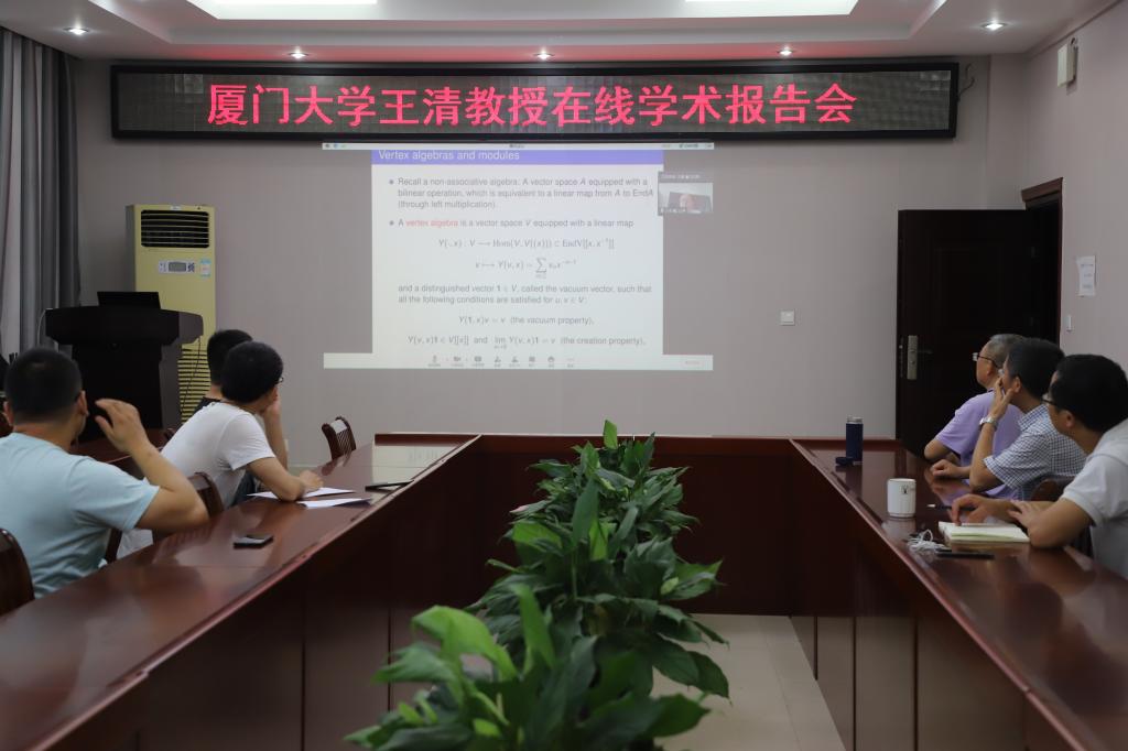 6月28日上午,应成人在线 邀请,厦门大学王清教授通过腾讯会议平台做了一场题为《Trigonometric Lie algebras, affine Lie algebras, and vertex algebras》的网络视频学术报告。报告会由成人在线 副院长蔡礼明教授主持,院长胡余旺教授,学院部分老师,研究生和该领域相关博士聆听了此次报告。