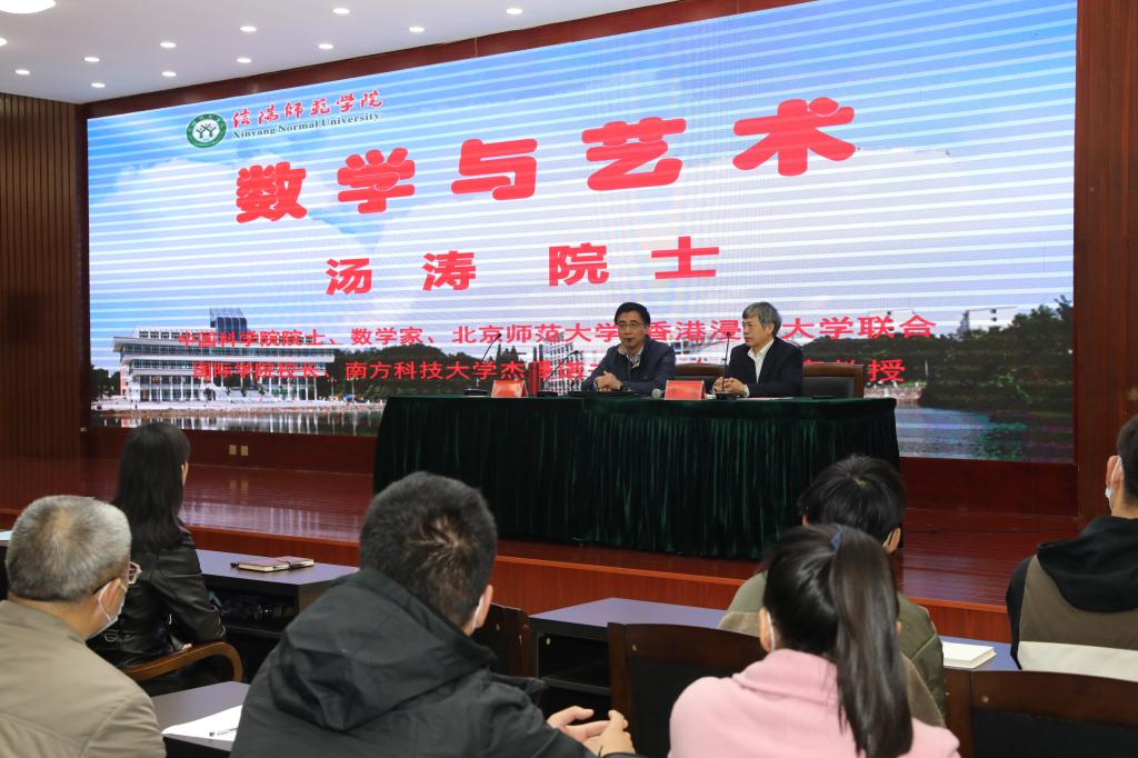 4月7日上午,应成人在线 邀请,北京师范大学-香港浸会大学联合国际学院校长汤涛院士在艺术楼一楼报告厅为成人在线 师生做了题为“数学与艺术”的报告,报告会由校长李俊主持。