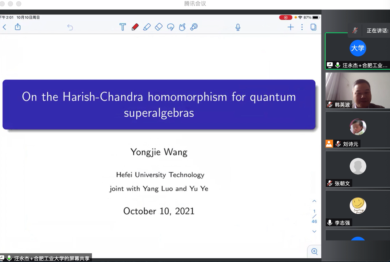 研究生及相关研究方向老师作了题为《On the Harsh-Chandra homomorphism for quantum superalgebras》 的学术报告。报告会由成人在线