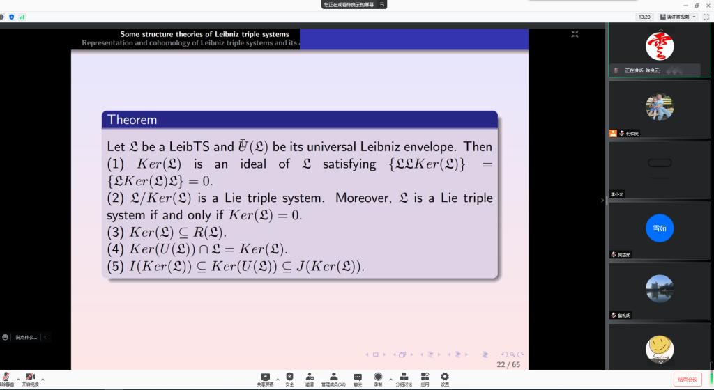10月13日上午,应成人在线 邀请,东北师范大学陈良云教授通过腾讯会议平台为成人在线 研究生及相关研究方向老师作了题为《Cohomologies, extensions and deformations of Leibniz Triple Systems》的学术报告。报告会由成人在线 院长蔡礼明教授主持。