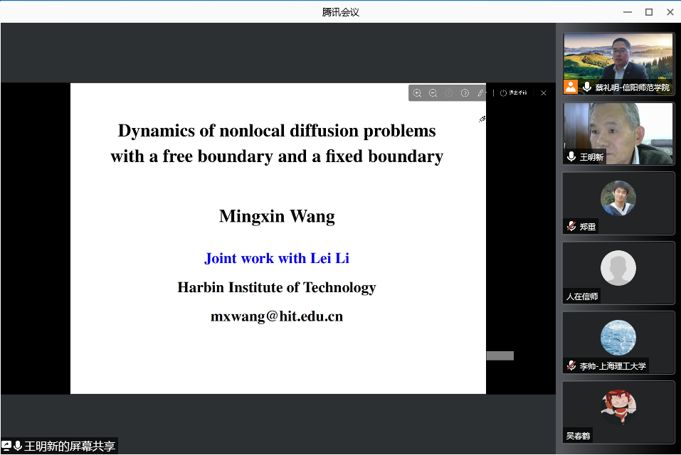 11月5日上午,应成人在线 邀请,哈尔滨工业大学王明新教授通过腾讯会议平台为成人在线 研究生及相关研究方向老师作了题为《Non-local diffusion problems with a free boundary and a fixed boundary》的学术报告。报告会由成人在线 院长蔡礼明教授主持。