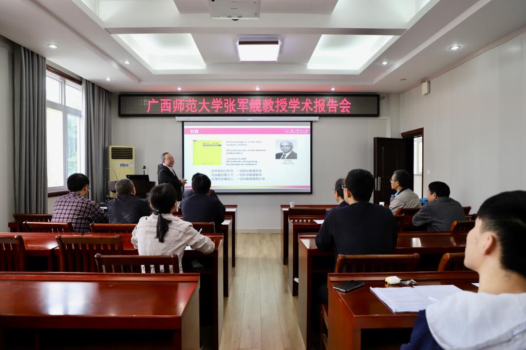4月28日上午,应成人在线 邀请,广西师范大学张军舰教授在学院报告厅315作了题为“统计之理论与应用研究”的报告。报告会由成人在线 院长蔡礼明教授主持,部分教师和研究生参加了此次报告会。