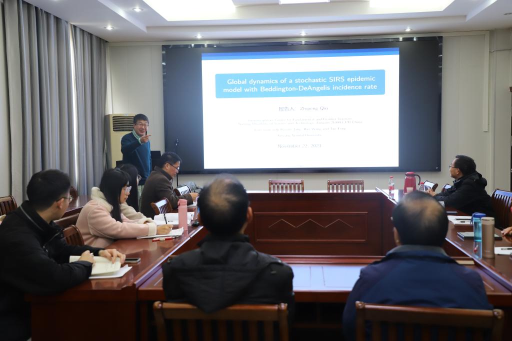 11月25日上午,应成人在线 邀请,南京理工大学邱志鹏教授教授在数学楼315报告厅为成人在线 师生做了题为“Global dynamics of a stochastic SIRS epidemic model with Beddington - DeAngelis incidence rate”的学术报告,成人在线 生物团队教师和全体研究生在场聆听了报告,报告由成人在线 王霞教授主持。