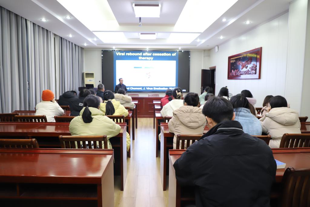 在报告中,荣礼彬教授首先展示在药物治疗下HIV病毒载量会呈现持久性、瞬态跳跃性以及断药后反弹性的特征。然后通过构造并研究几类动力学模型从机理上给出了潜伏细胞的存在、干细胞的非对称分裂以及T细胞的存在与记忆性可诱导病毒载量呈现这些复杂的特征。最后,荣老师基于模型做出了诸如断药前病毒载量越高和治疗时间越短,病毒载量反弹越快的推断。