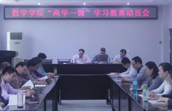 5月3日下午,数学学院在数学楼会议室召开“两学一做”学习教育动员会。党委书记柳士刚、院长胡余旺、党委副书记何永以及该院全体教工支部党员参加此次动员会。