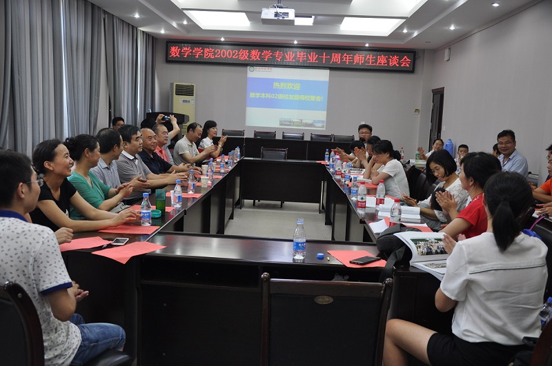 下午3点,在数学学院三楼会议室召开了2002级校友师生座谈会,参加座谈会的分别是数学学院党委书记柳士刚,数学研究所副所长王娟,班主任王霞,以及任课教师代表穆大禄教授,俞迎达教授,裴惠生教授,陶有德教授,方勤华教授,张萍老师。座谈会由校友吕洋主持。