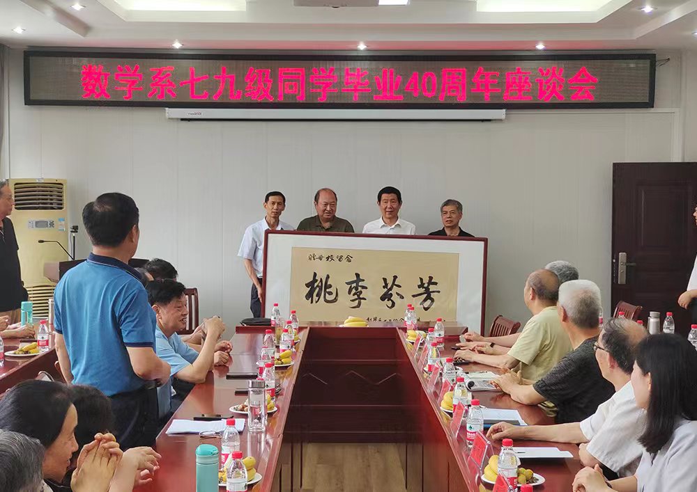 四十载时光荏苒,再聚首风采依旧。7月15日,数学系1979级校友从全国各地回到学校,举办毕业40年师生座谈交流活动,追忆青春岁月,重温同窗情谊。校长李俊,校党委副书记、工会主席岳宗德,副校长王娟,钱远晏、张前中、穆大录、裴惠生、武津刚、俞迎达等退休教师代表,对外联络办公室、成人在线 相关单位负责人参加了座谈,同回校的56位校友欢聚一堂、愉快交流。