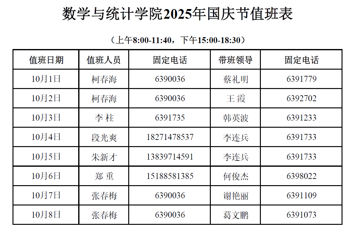 成人在线 2025年国庆节值班表