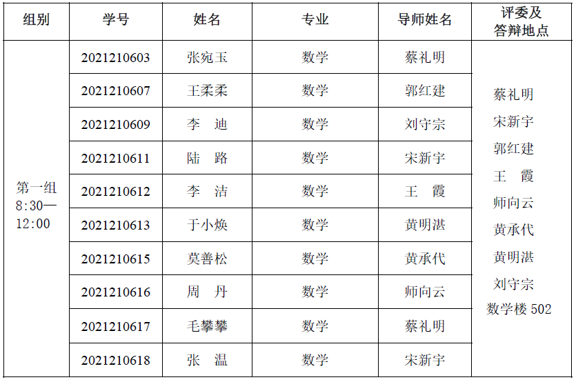 成人在线 2022-2023学年第二学期2022级专业硕士研究生(两年制专业硕士)、2022级同等学历研究生、2020级硕师计划研究生学位论文选题报告和2021级学术硕士研究生(三年制学术硕士)学位论文中期考核答辩会定于2023年6月27日举行,其中中期考核时间为8:30—12:00,选题报告时间为15:00—18:30,具体分组见下表。参加答辩的同学需提前填写好《信阳师范学院硕士研究生学位论文选题报告》或《信阳师范学院硕士研究生中期考核表》,并按照选题报告或中期考核所列内容准备12分钟左右的汇报课件参加答辩,届时不参加答辩的同学视为考核不通过。