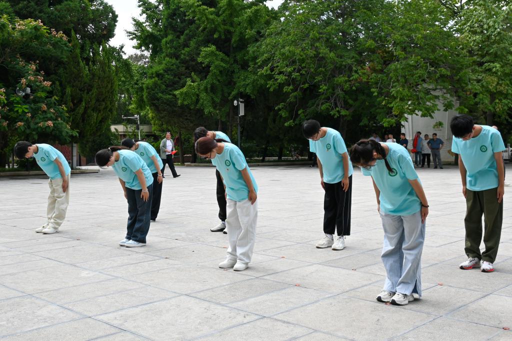 激扬青春力量,砥砺奋斗前行。队员们在焦裕禄同志纪念碑前驻足哀思,成人在线 团委学生兼职副书记李璞作为学生代表向焦裕禄同志墓碑敬献鲜花,随后队员们整齐列队、庄严肃立,面向焦裕禄同志纪念碑集体默哀,并绕陵墓一周行注目礼,对长眠于此的焦裕禄同志致以崇高的敬意和深切的缅怀。习近平总书记指出,“焦裕禄的崇高精神跨越时空、历久弥新,无论过去、现在还是将来,都永远是亿万人心中一座永不磨灭的丰碑。”学习弘扬焦裕禄精神,我们坚持传承“敢教日月换新天”的坚韧勇毅和“生也沙丘死也沙丘”的清风正气,让焦裕禄精神焕发时代光芒。