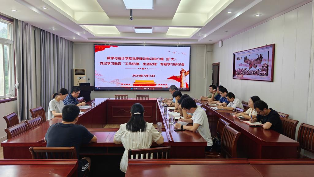 7月15日,成人在线 党委理论学习中心组(扩大)举行专题学习,围绕党纪学习教育“工作纪律、生活纪律”进行集体学习研讨。学院党委理论学习中心组成员、科级干部参加了会议,党委书记张楠主持并讲话。