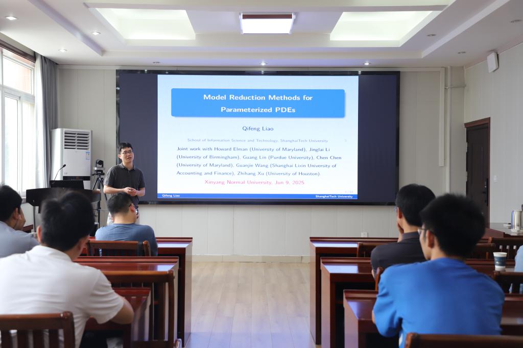 6月9日上午,应成人在线 邀请,上海科技大学廖奇峰教授作了题为《Reduced basis methods for parameterized PDEs》的学术报告。报告会由李世顺教授主持,部分老师及研究生聆听了此次报告。