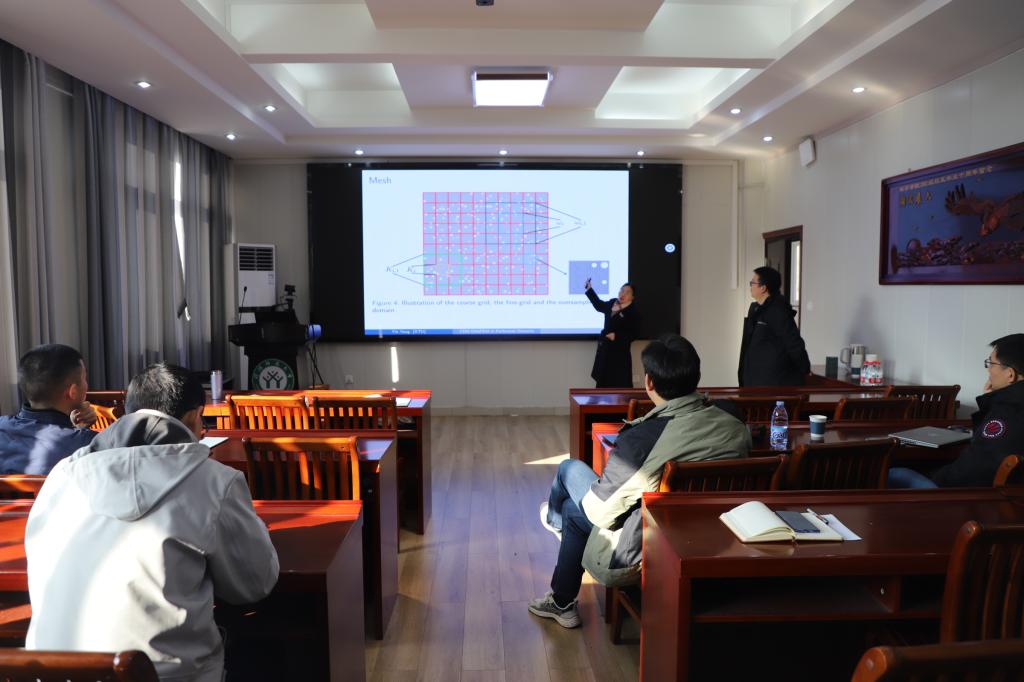 12月25日上午,应成人在线 邀请,湘潭大学杨银教授作了题为《基于CEM-GMSFEM的非均质有孔区域多尺度模型降阶》的学术报告。报告会由李世顺教授主持,部分老师和研究生聆听了此次报告。