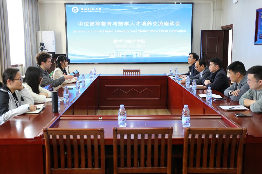应成人在线 邀请,法国勒阿弗尔大学Quentin Griette教授来校开展为期一周的学术交流活动。327日下午,学院在数学楼学术报告厅举办中法数学教育与人才培养交流主题座谈会,由副院长何俊杰主持,副院长李连兵、骨干教师及学生代表出席。