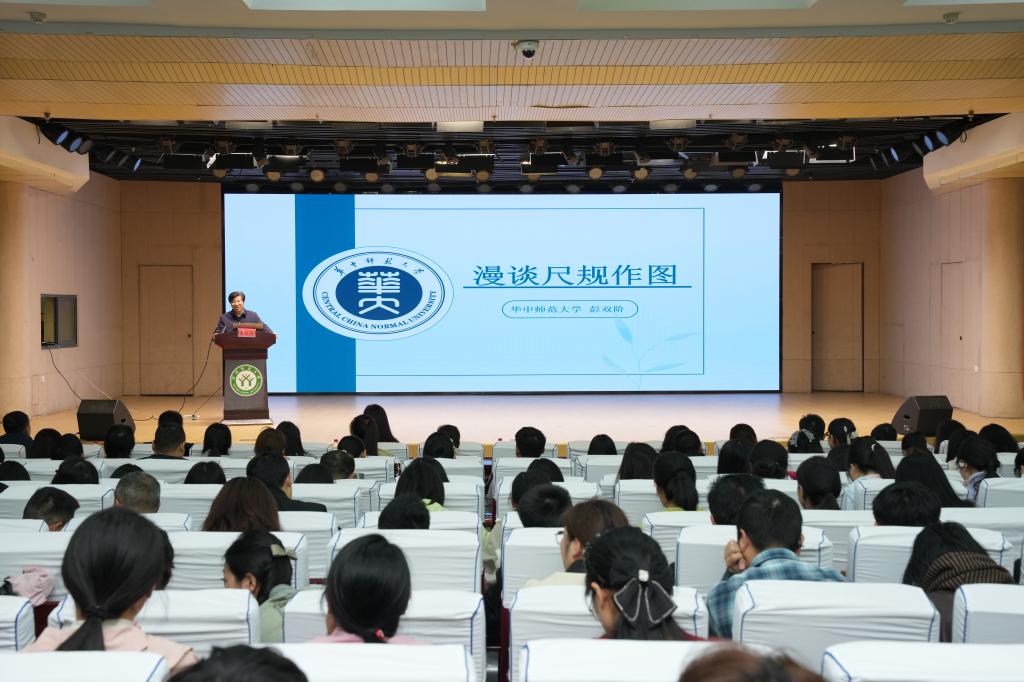 3 月 29 日上午,应成人在线 邀请,华中师范大学校长彭双阶教授在理科楼报告厅做了题为《漫谈尺规作图》的学术报告。报告会由副校长王娟教授主持,成人在线 理工科学院部分师生与信阳市浉河中学、第三小学、胜利路小学部分教师聆听了此次报告。