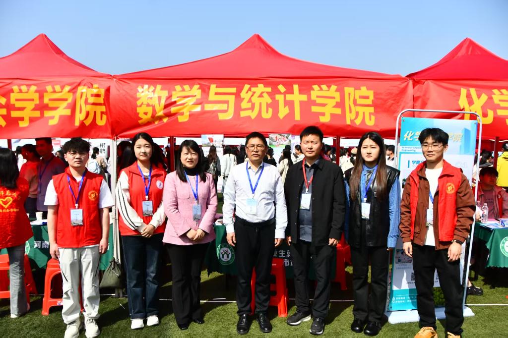 4月10日,河南省毕业生就业市场豫南分市场暨成人在线 2026届毕业生春季双选会在学校西操场举行。学院院长蔡礼明,就业指导教师葛文鹏、谢艳丽、吴成熙、李蔚林参加双选会。